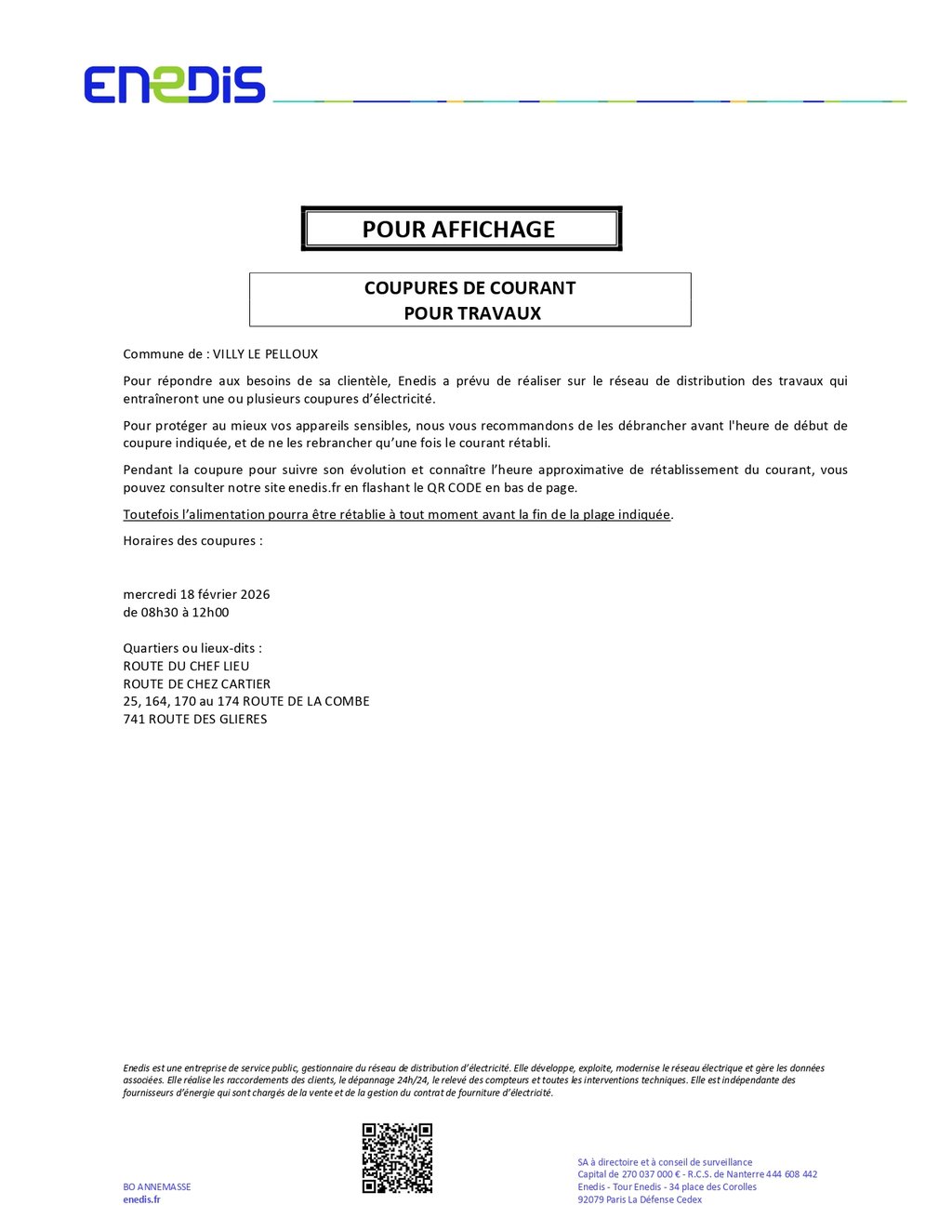 mercredi 18 février 2026 entre 08h30 et 12h00