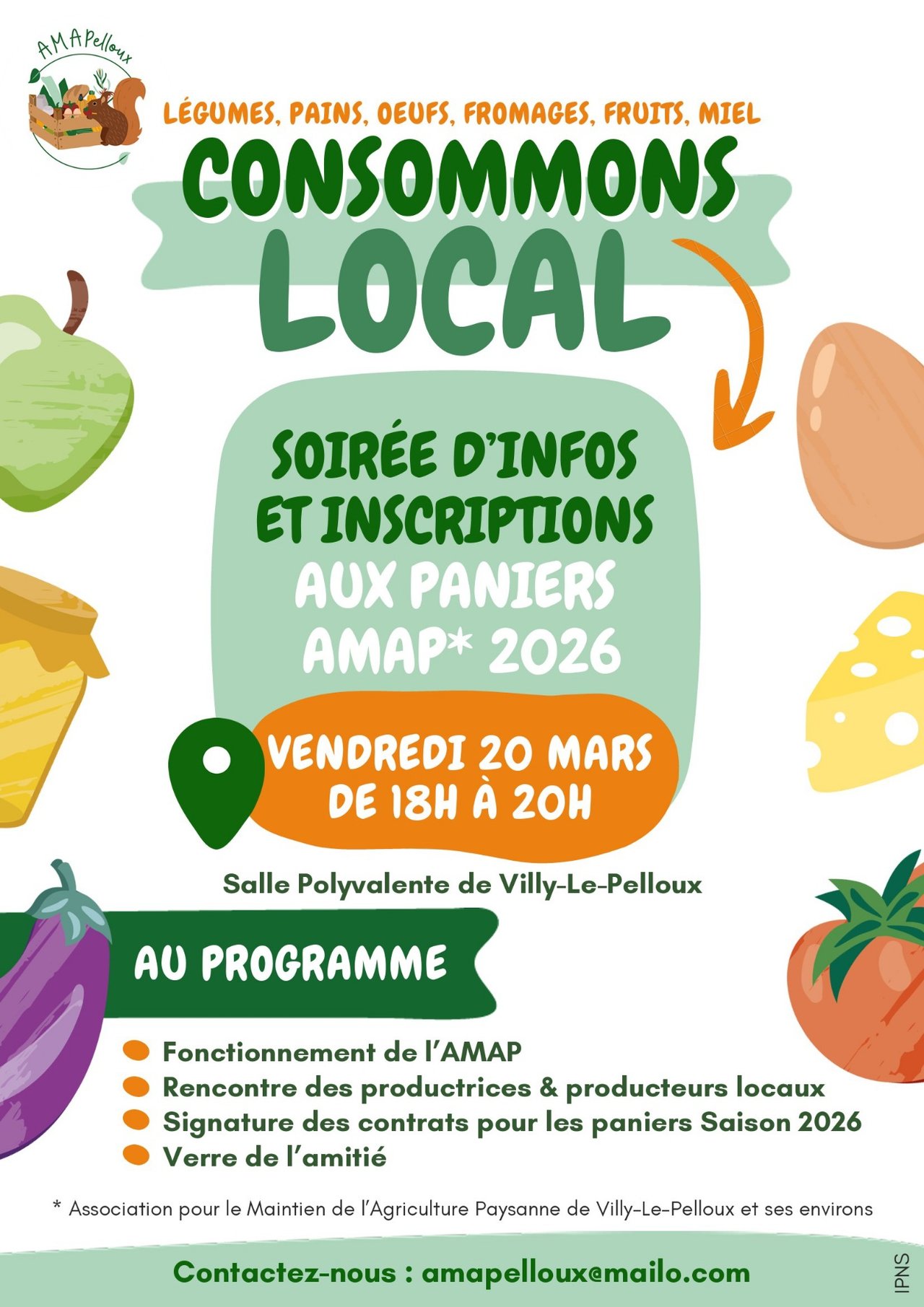 La soirée sera l’occasion d’échanger, de déguster les produits proposés et de vous inscrire aux paniers AMAP pour la saison 2026.
